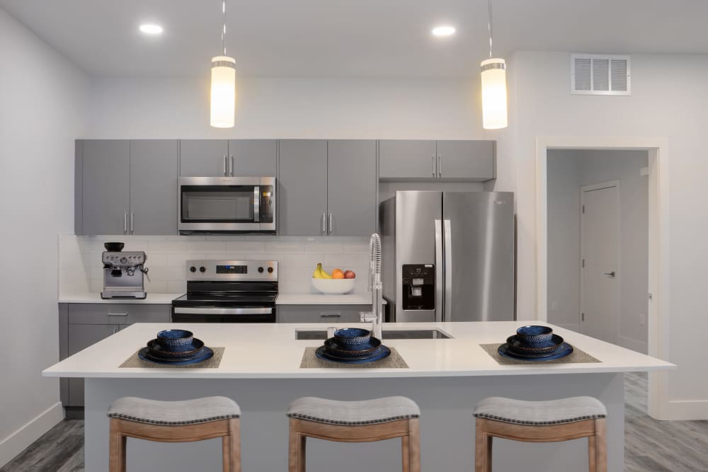 Let your home at Calm at Eastern be a beautiful getaway from the hustle and bustle of Las Vegas and your well-connected launchpad to it all. A residence here brings you the best of both worlds, while high-end in-home finishes like stainless-steel appliances and wood-style flooring complete the entire picture. Whether you’re reading a book by the pool or mingling with neighbors in the clubhouse, there are so many ways to live well at Calm at Eastern.